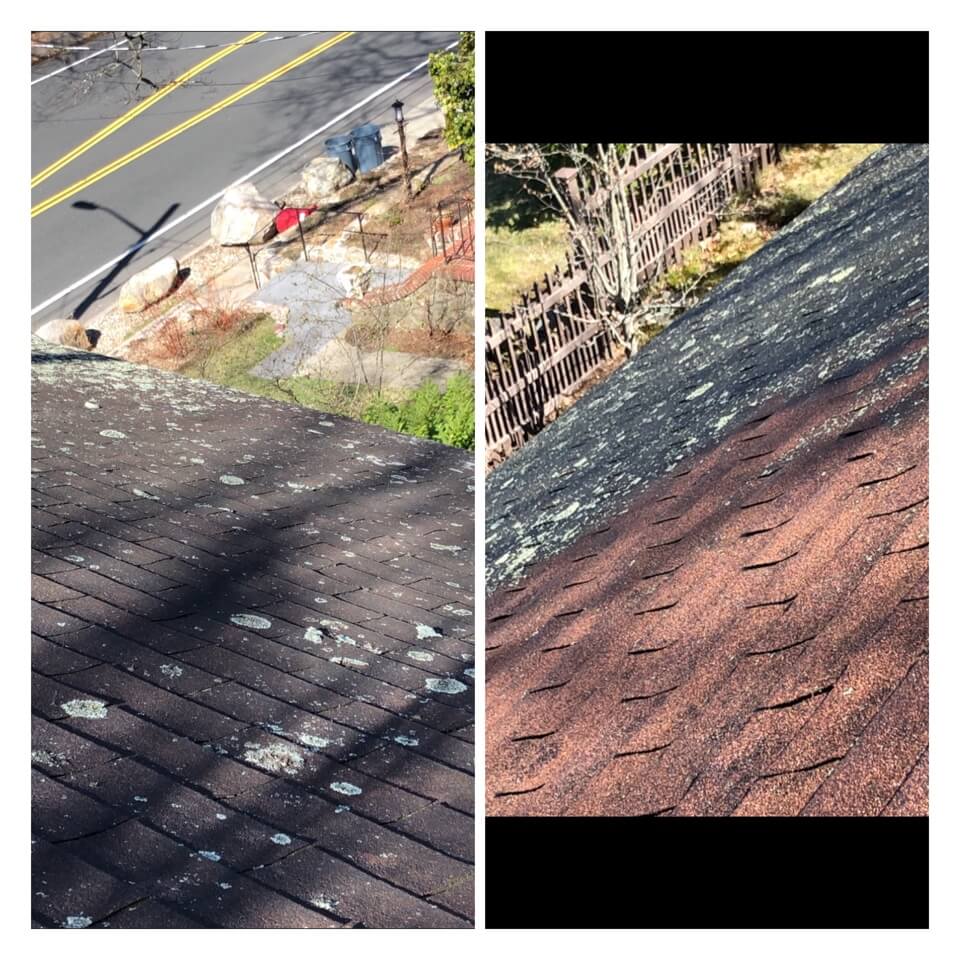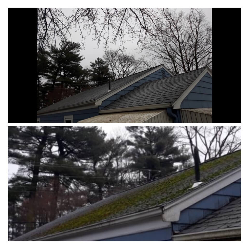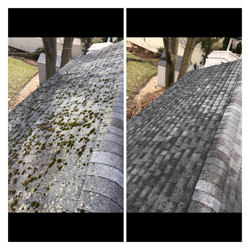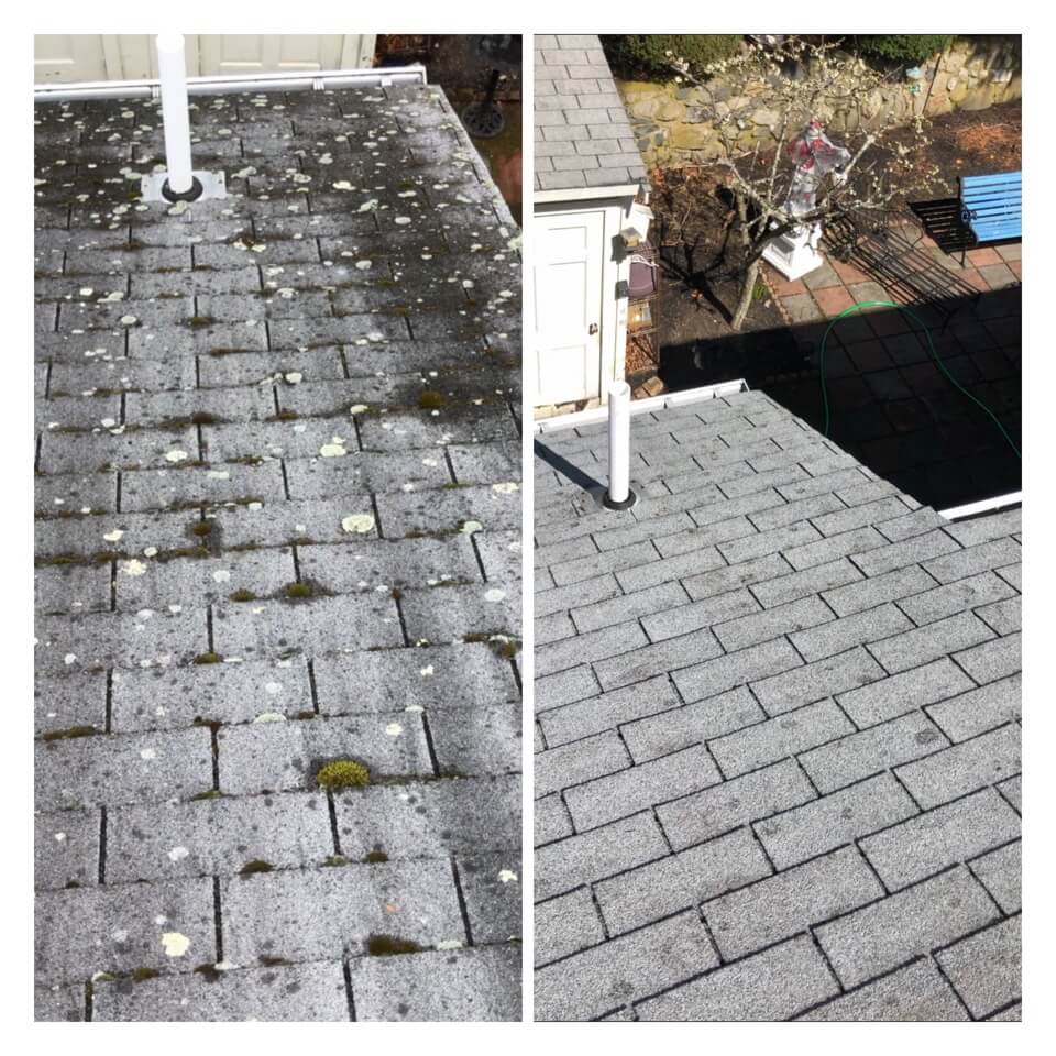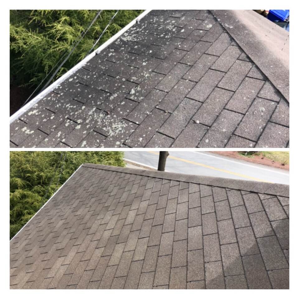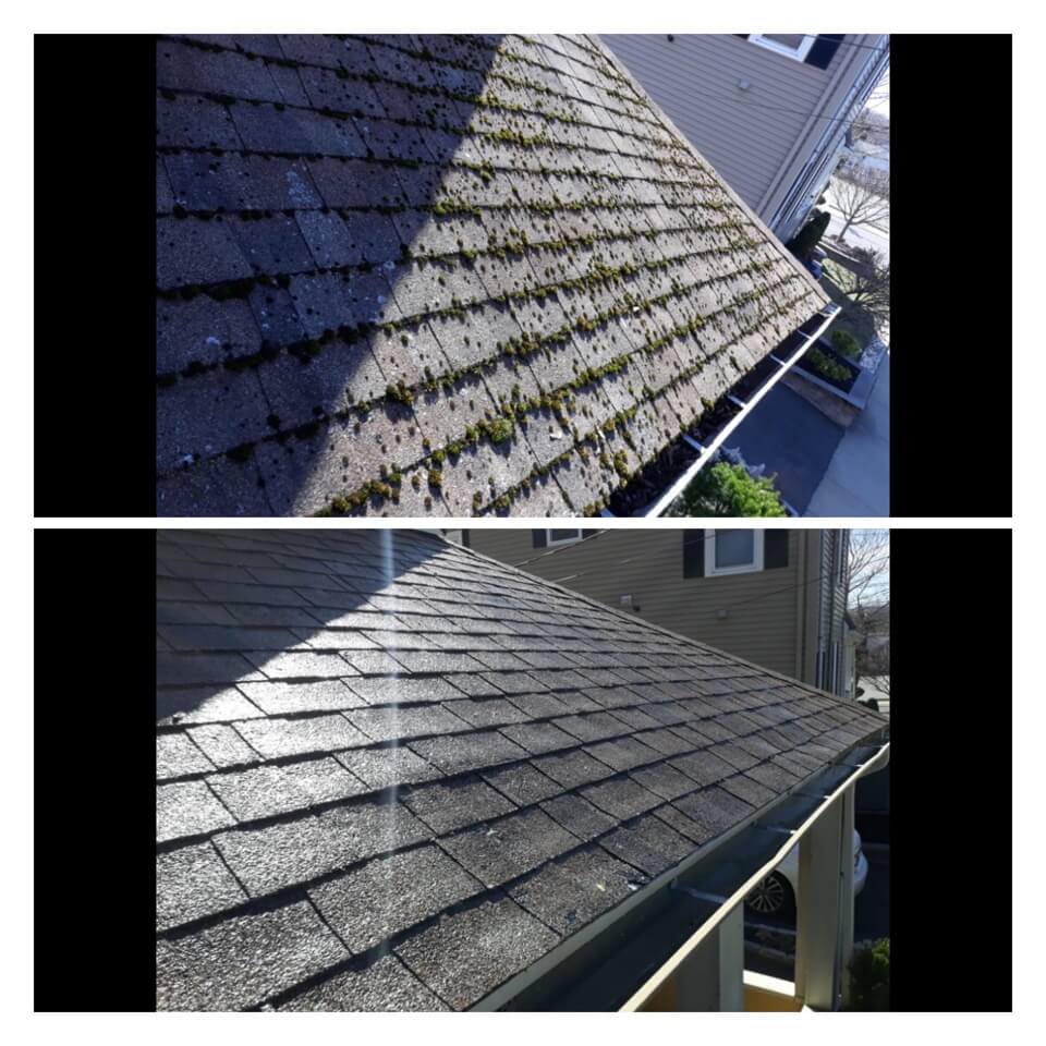 HiCleaners is the most experienced company in Salem, MA that deals with roof washing and roof soft washing. All of our employees are trained to recognize precise solution mixing ratios to provide you with the safest and most effective soft washing service. Roofs are a commonly neglected part of a house due to the fact that most people don’t have ladders to access it, so it is very easy to just leave it alone and forget about problems that may start to arise. Just like many home owners, discoloration and small bits of moss on a roof can be overlooked because of the misconception that it is just aesthetic. However, it isn’t just aesthetic, the moss slowly lifts the granules off the shingles which in turn shorten the life of the shingle. The moss also spreads, just like any bacteria if it is left alone for too long, it can quickly become a problem that spirals out of control. Call HiCleaners for a free quote, we only use the most advanced eco-friendly solutions and equipment to make sure the job is done right, for the safety of the employees, your plants, grass, pets, and children.